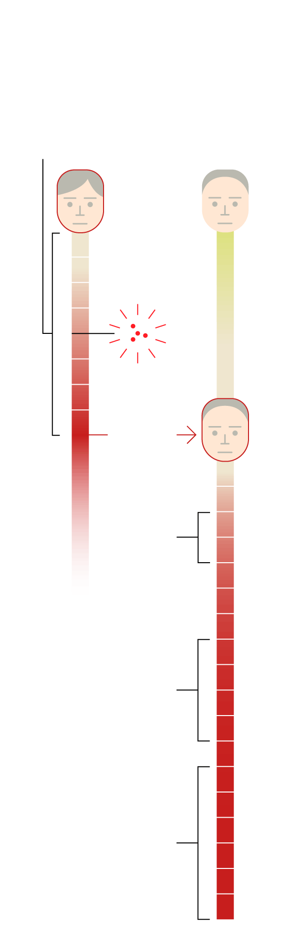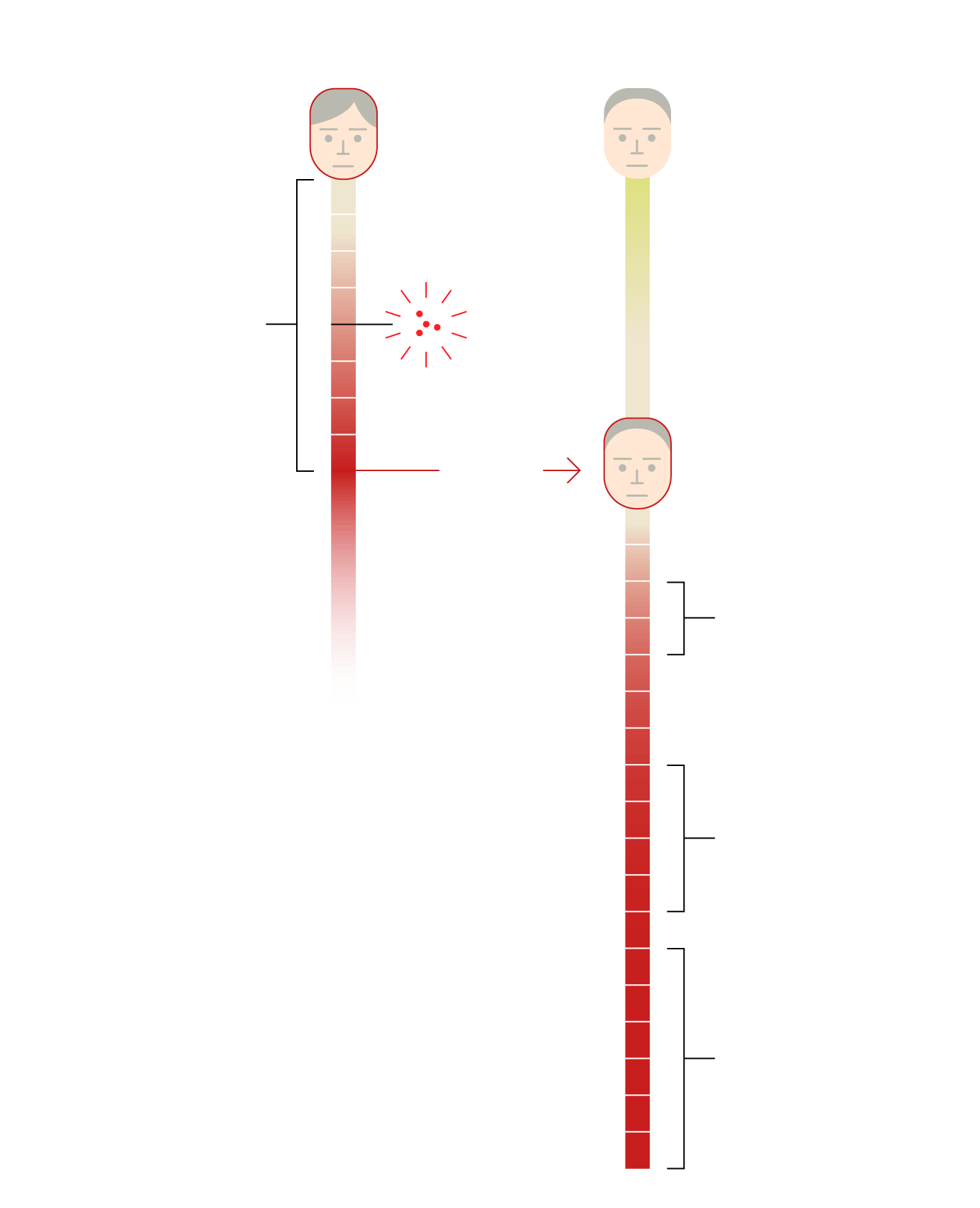 The spots are a vivid red for one to three days.