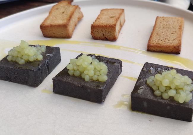It is one of the most popular dishes along with the swordfish, although if we leave aside its colour, more typical of squid ink than of its flesh, it is a pâté that is too flat in the mouth and lacks the flavour of the cephalopod.