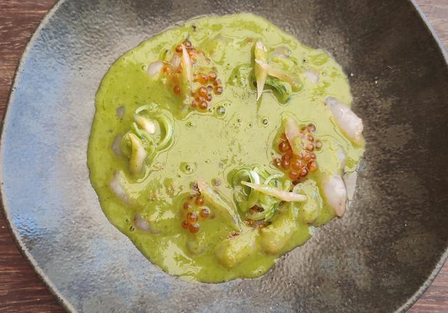 An interesting alternative to the way prawns from Malaga are usually prepared and served in this area. A medium-sized seafood, tasty and, after maceration in a green sauce, is a very fresh dish in the mouth.