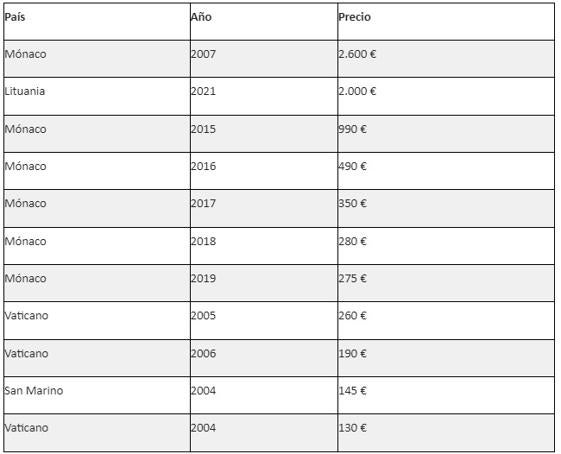 Above is a list of the most expensive two-euro coins currently in circulation.